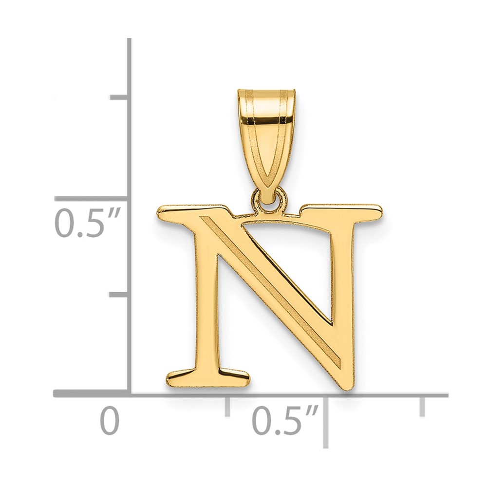 14k Polished Etched Letter N Initial Pendant