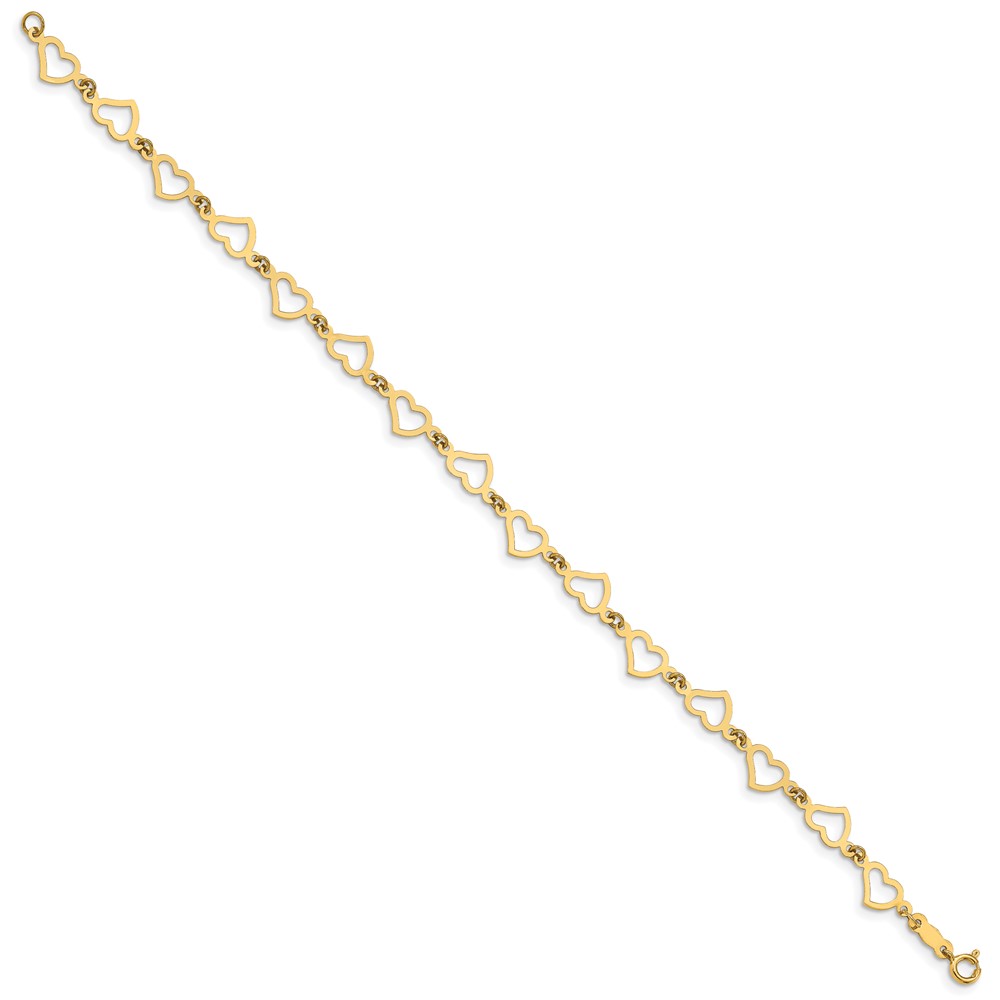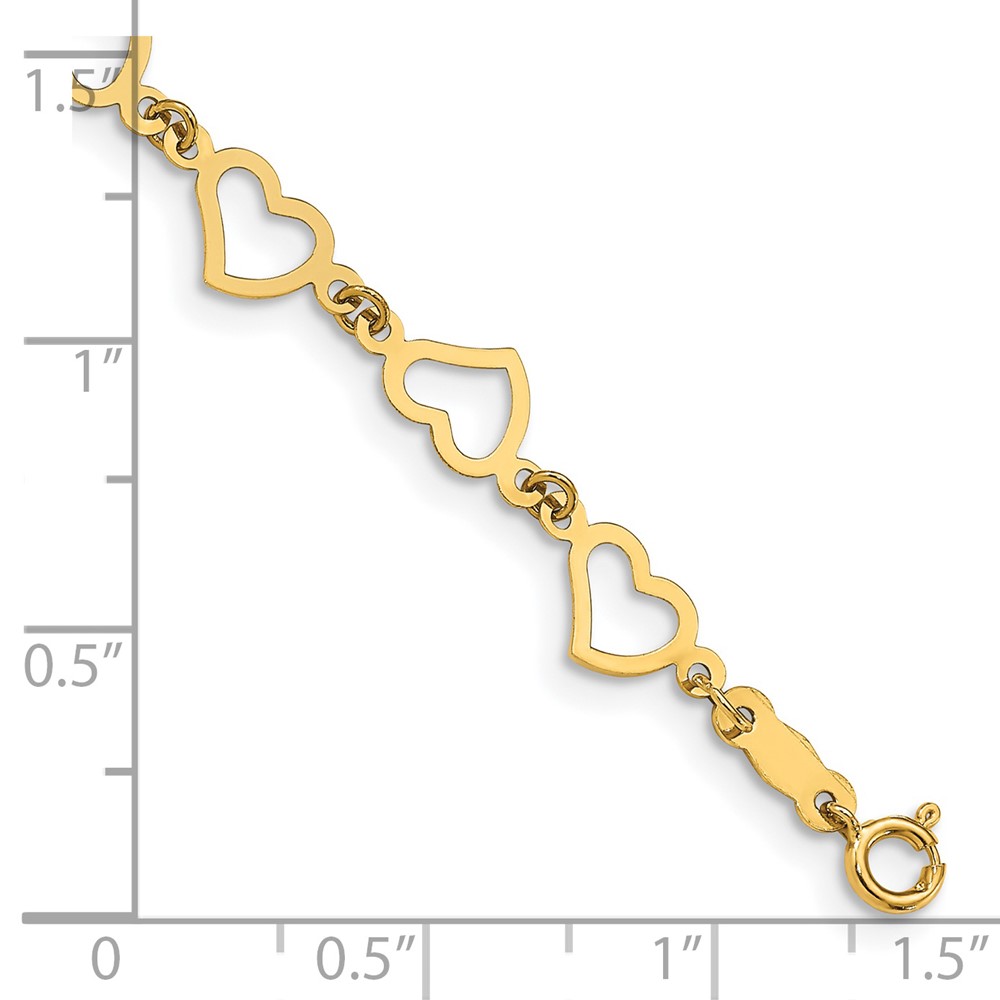 14K Polished Flat Open Hearts 7.5 inch Bracelet