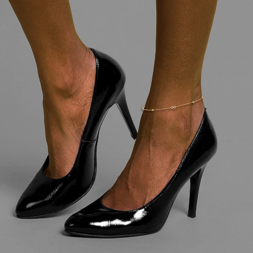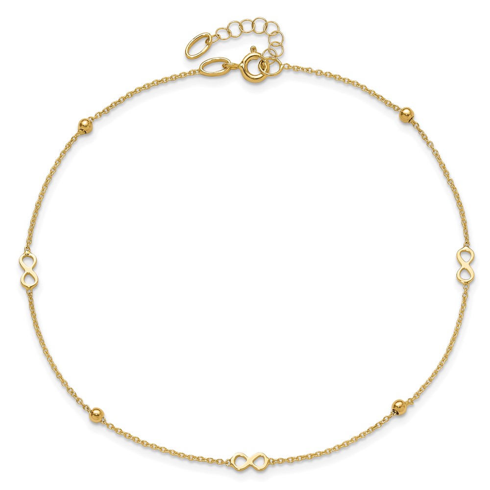14K Polished Infinity and Beads Plus Extender – Total Anklet