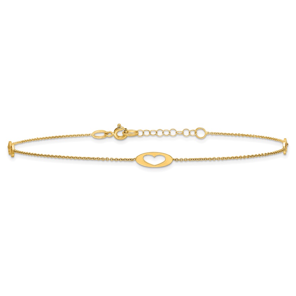 14k Polished Diamond-cut Triple Puffed Hearts Plus Extender – Total Anklet
