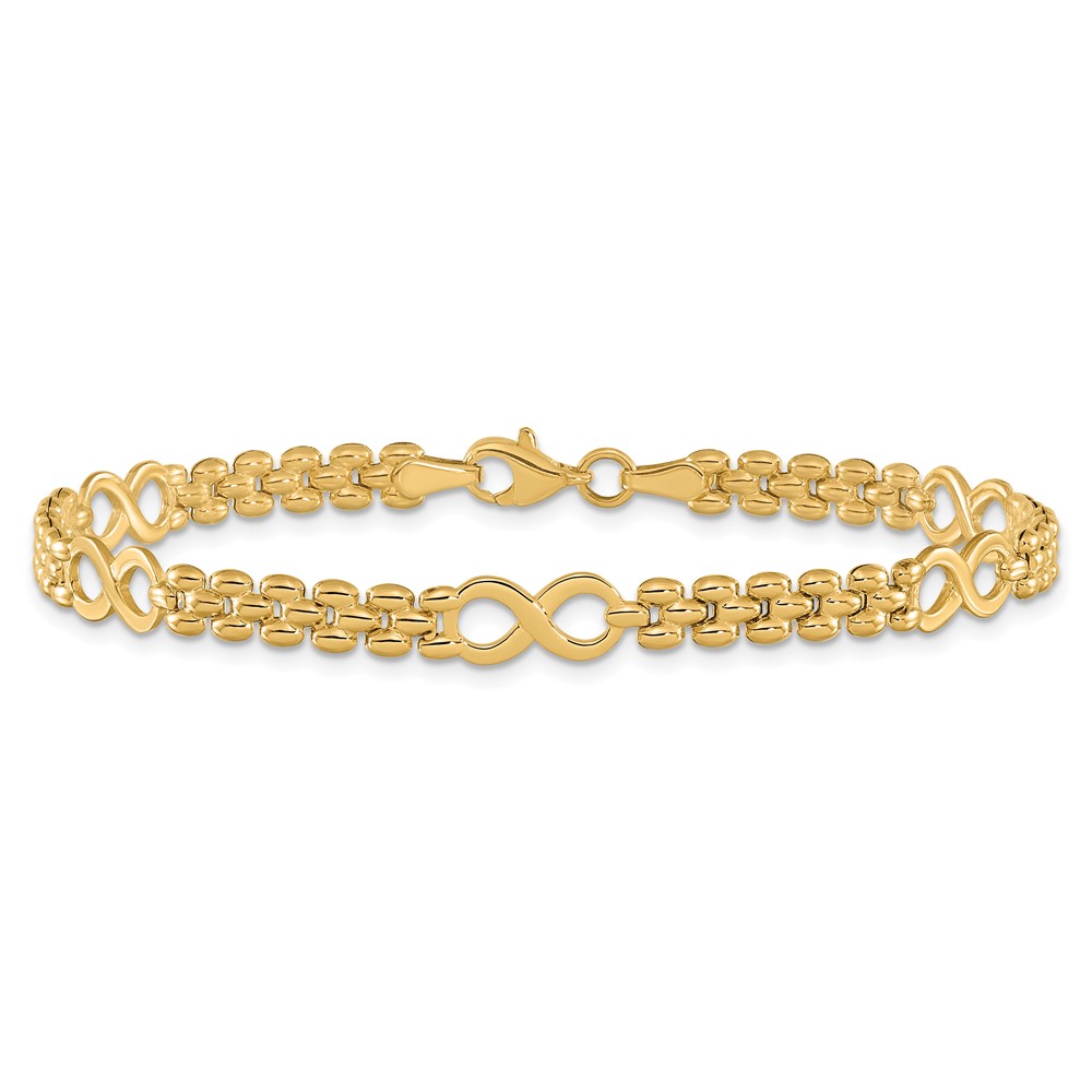 14K Polished Infinity Symbol and Fancy Link 5-Station 7.5 inch Bracelet