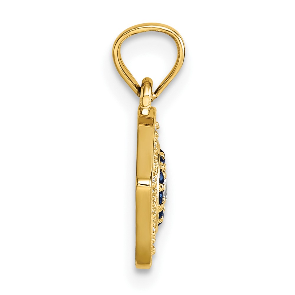 14k Polished Lab Created Blue Spinel and CZ Evil Eye Charm Pendant