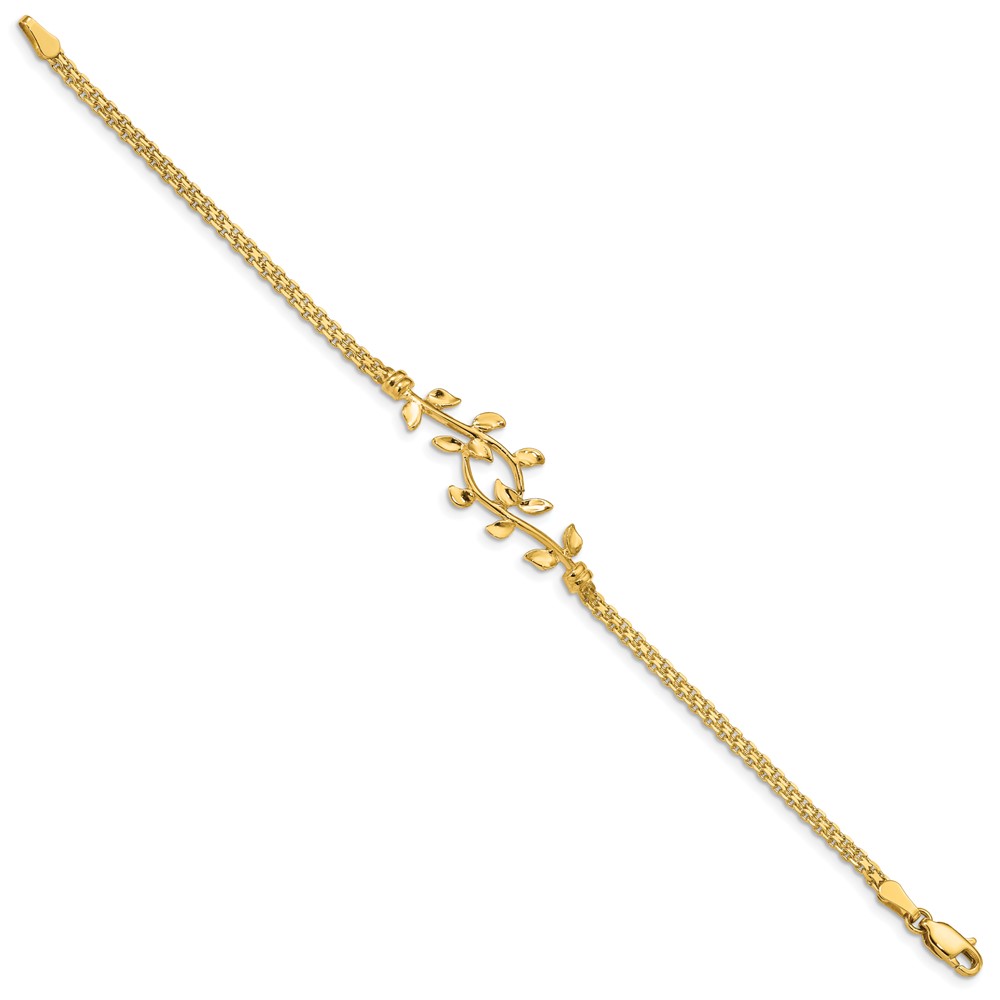 14K Polished Leaves and Bismark Chain 7 inch Bracelet