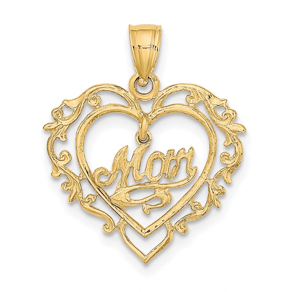 14K Polished MOM Dangle in Fancy Heart Pendant