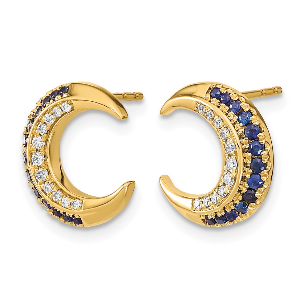 14k Polished Moon Sapphire and Diamond Post Earrings