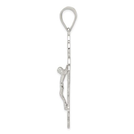 14k Polished Satin and Diamond-cut Crucifix Pendant