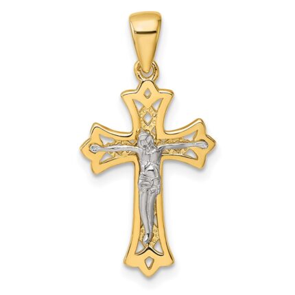 14k Polished Satin and Diamond-cut Crucifix Pendant