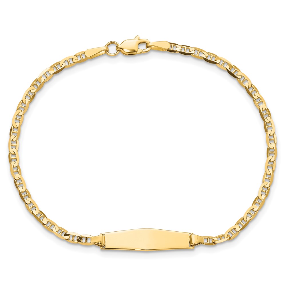 14k Polished Semi-Solid Chain/Solid Plate Anchor Link Soft Diamond Shape 19.5×5.5mm Plate 5.5 inch Baby/Child ID Bracelet