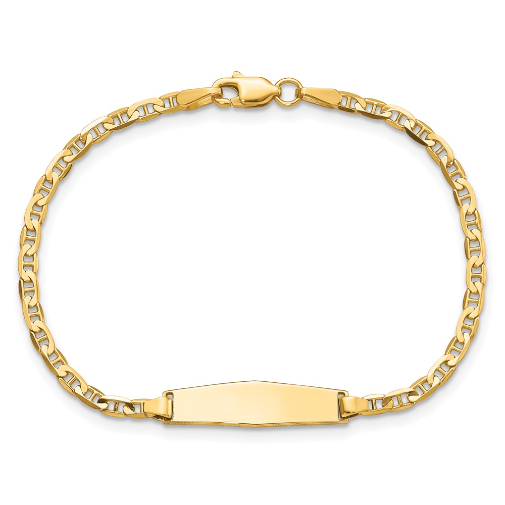 14k Polished Solid Chain/Solid Plate Flat Anchor Link Soft Diamond Shape 19.5×5.2mm Plate Baby/Child ID Bracelet