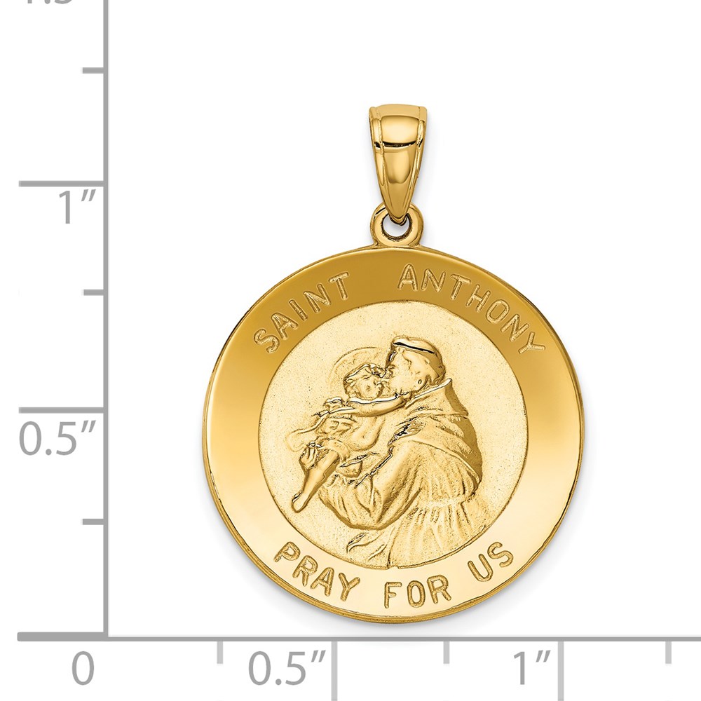 14k Polished Solid Saint Anthony Large Round Medal Pendant