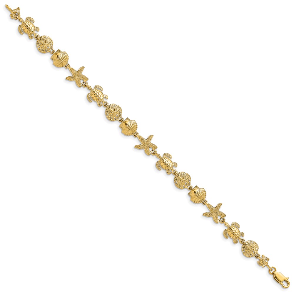 14K Polished Turtle/Sand Dollar/Shell/Starfish Link 8 inch Bracelet