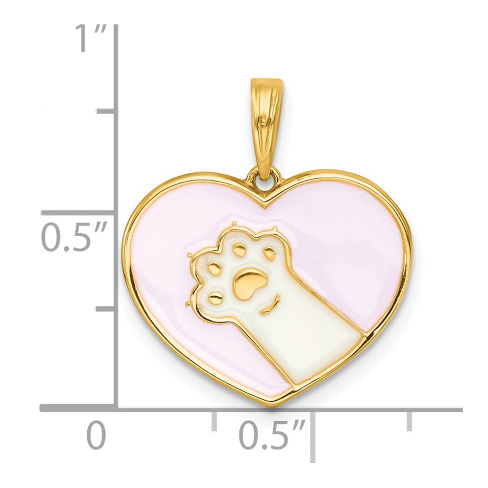 14k Polished White Enamel Paw In Pink Heart Charm