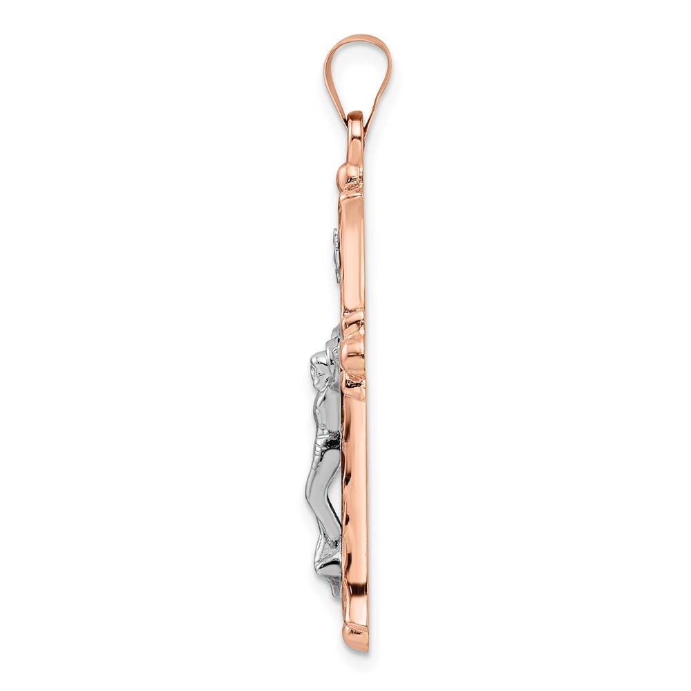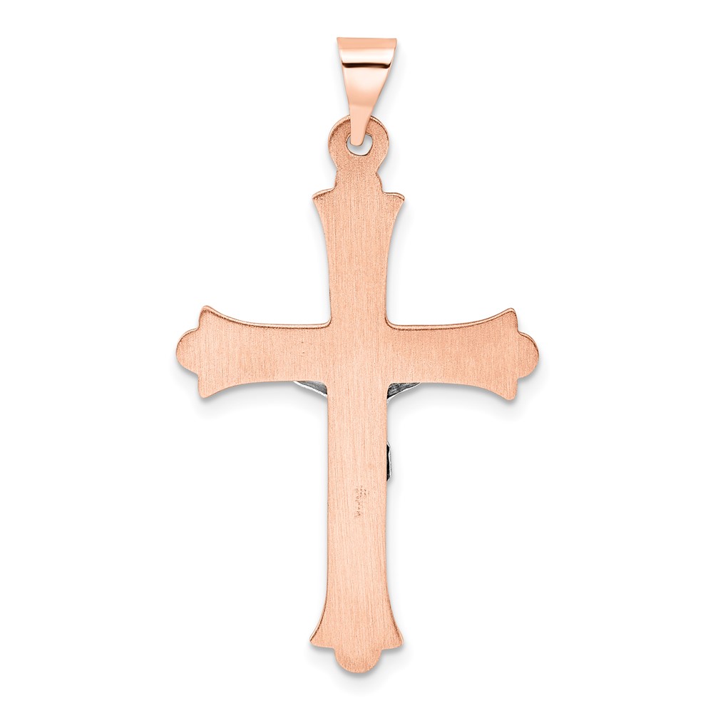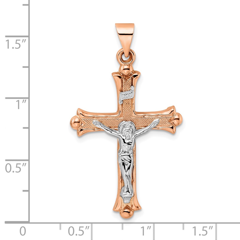 14k Rose and White Gold Polished Fleur de Lis INRI Hollow Crucifix Pendant