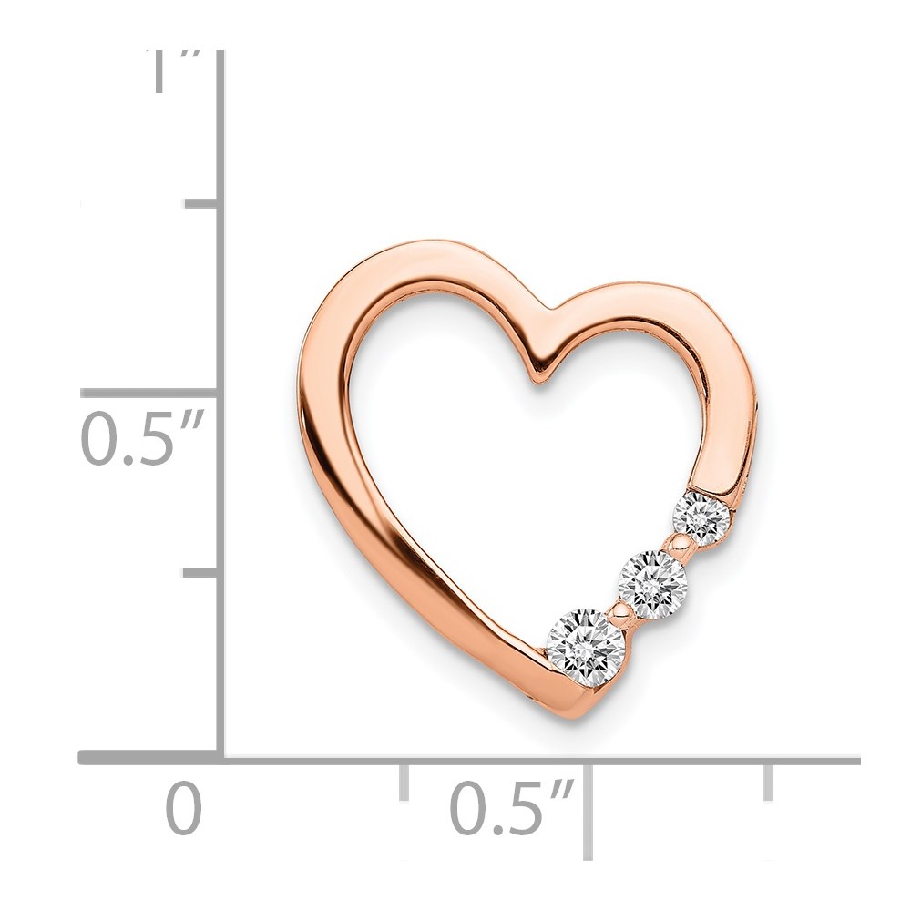 14k Rose Gold 1/6 carat Diamond 3-Stone Heart Chain Slide
