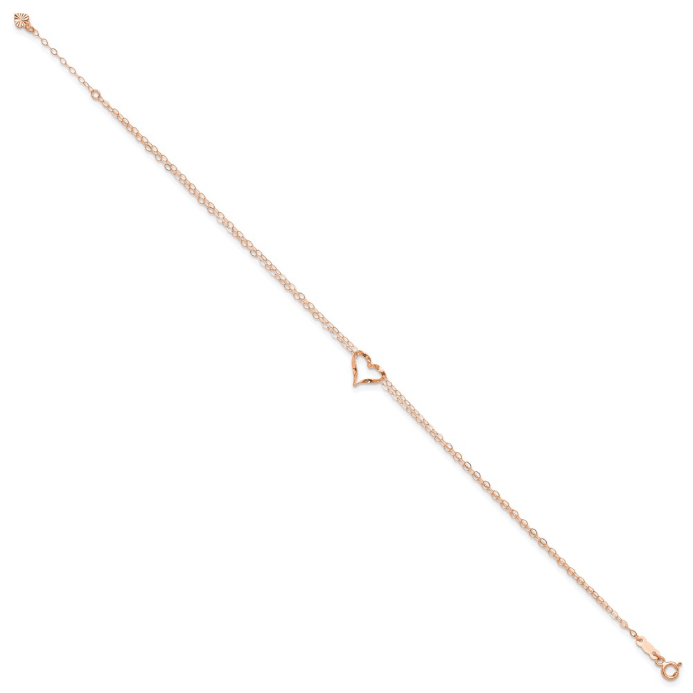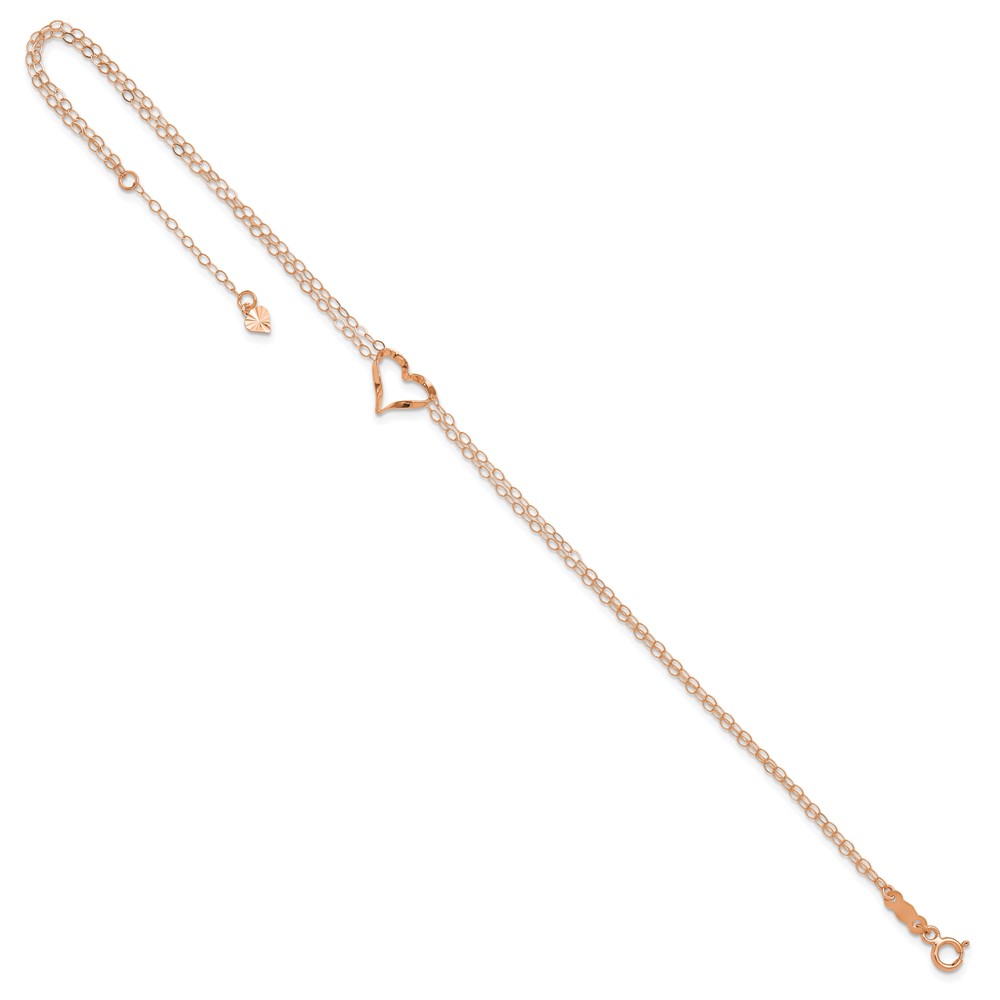 14k Rose Gold Double Strand Chain Twisted Heart Plus Extender – Total Anklet