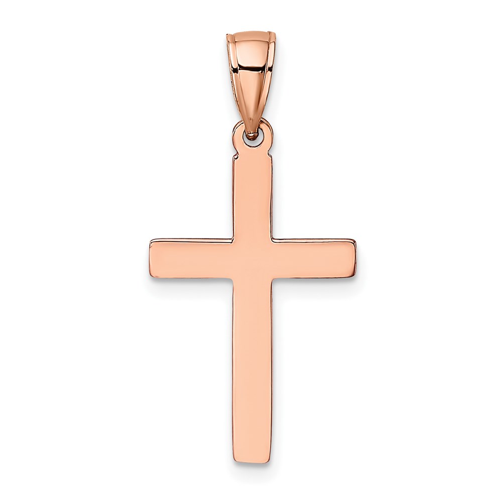 14K Rose Gold Polished Beveled Cross Charm
