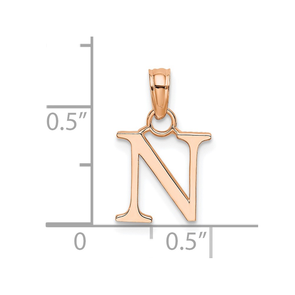 14K Rose Gold Polished Block Letter N Initial Pendant