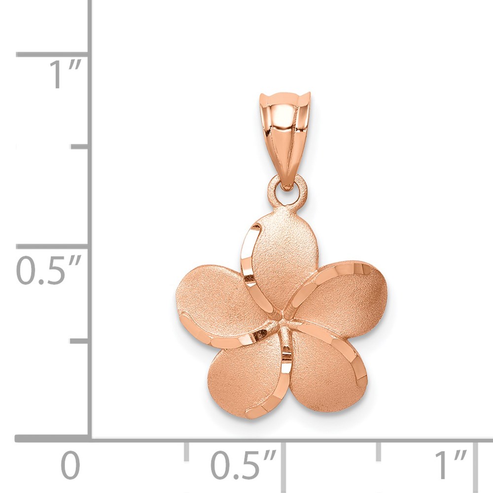 14K Rose Gold Satin Diamond-cut Plumeria Pendant