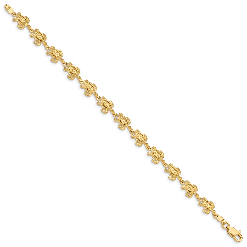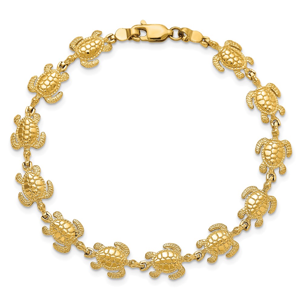 14k Swimming Sea Turtle 7.25 inch Bracelet