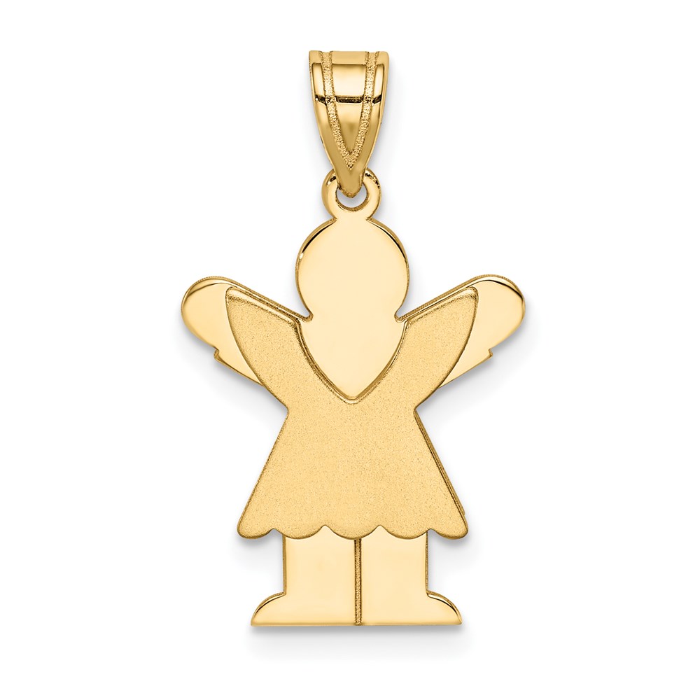 14k The Kids Solid Satin Small Girl with Ruffles Engravable Love Charm