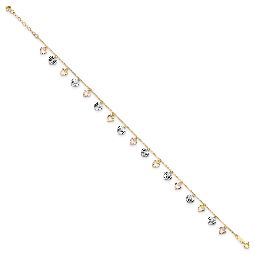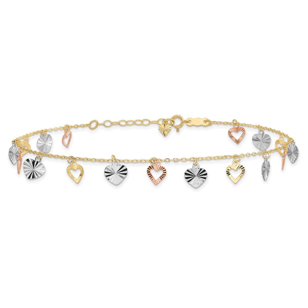 14K Tri-Color Diamond-cut Hearts Plus Extender – Total Anklet