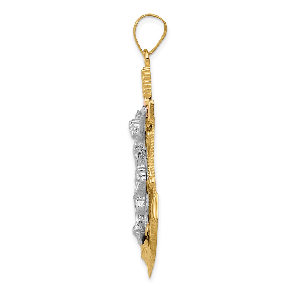 14k Tri-color Diamond-cut and Textured Mariners Crucifix Pendant