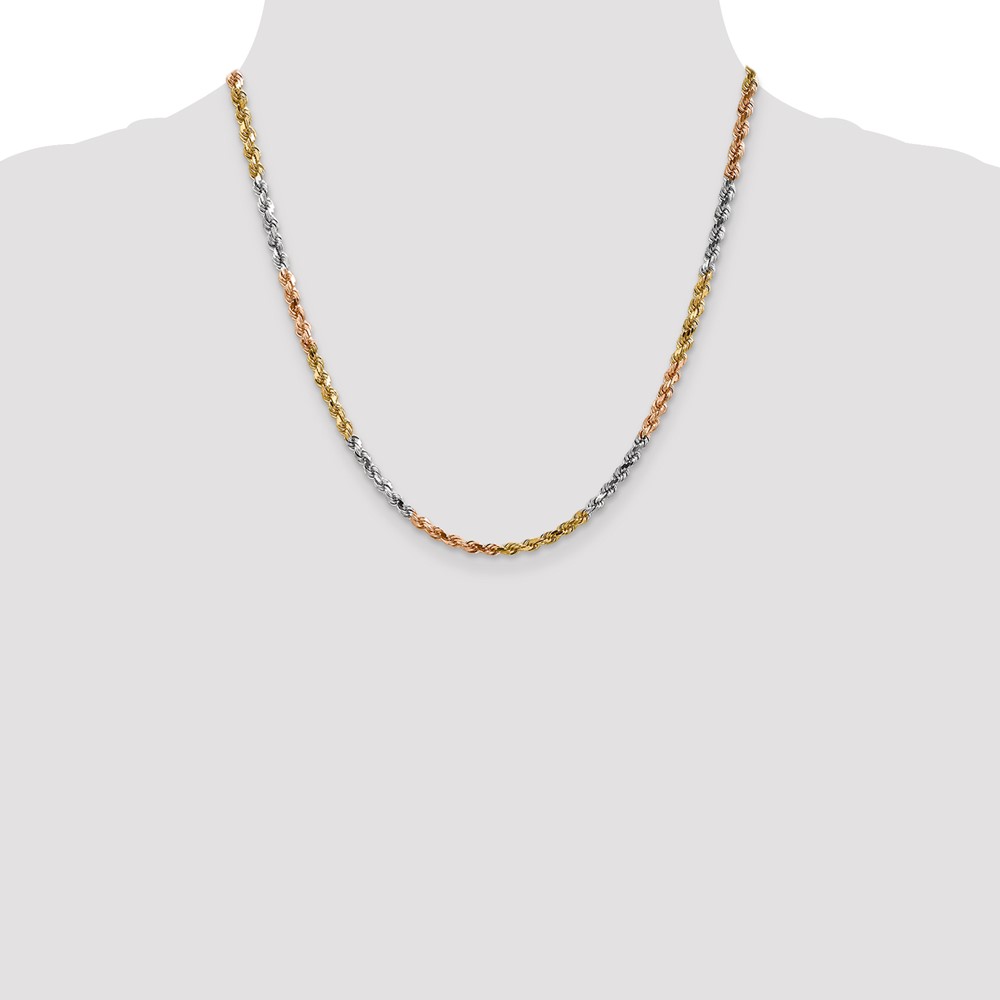 14K Tri-colored 4mm Diamond-cut Rope with Lobster Clasp Chain