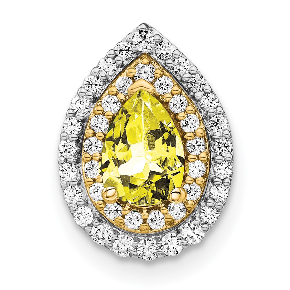 14k Two Tone 1/2 carat Lab Grown Diamond VS/SI+ G+ and Lab Created Yellow Sapphire Chain Slide Pendant