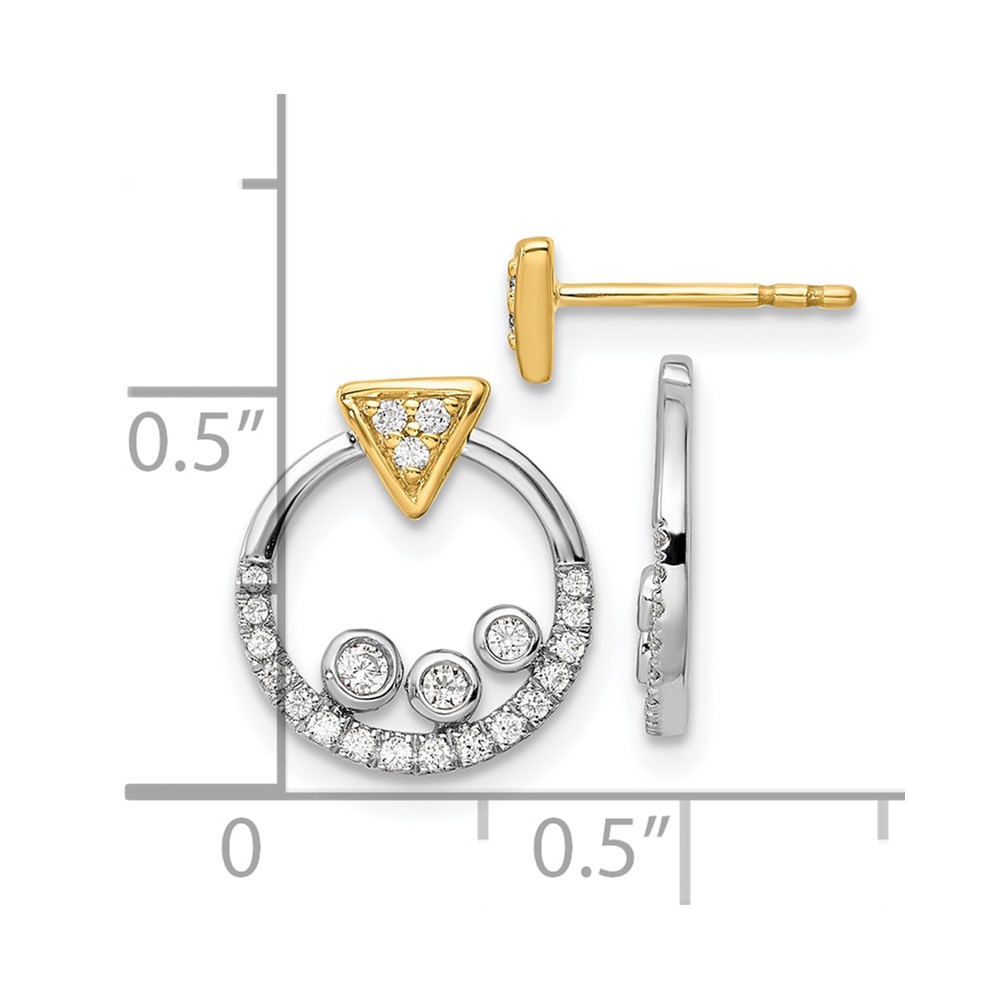 14k Two Tone 1/4 carat Lab Grown Diamond VS/SI+ G+ Complete Triangle Post Earrings with Circle Dangle Earring Jacket