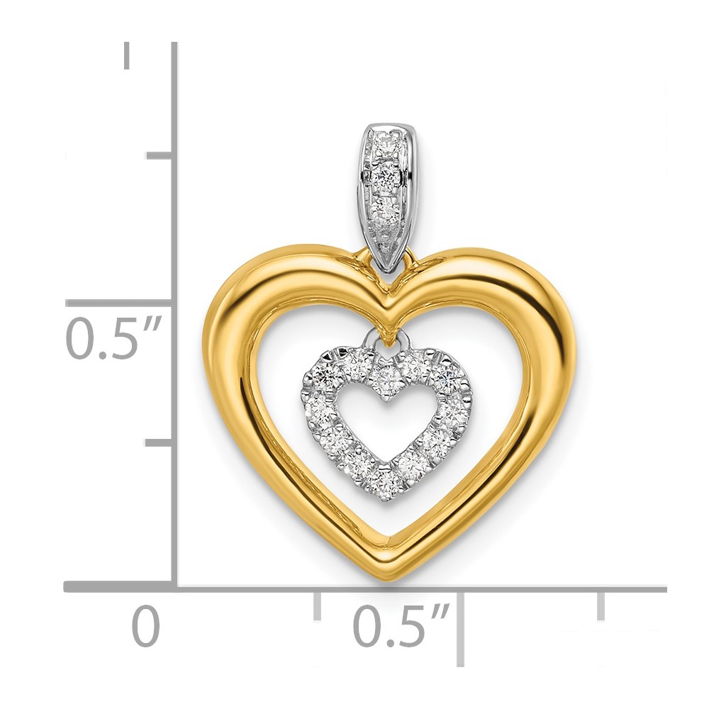 14k Two-tone 1/6 carat Lab Grown Diamond VS/SI+ G+ Complete Dangle Double Heart Pendant
