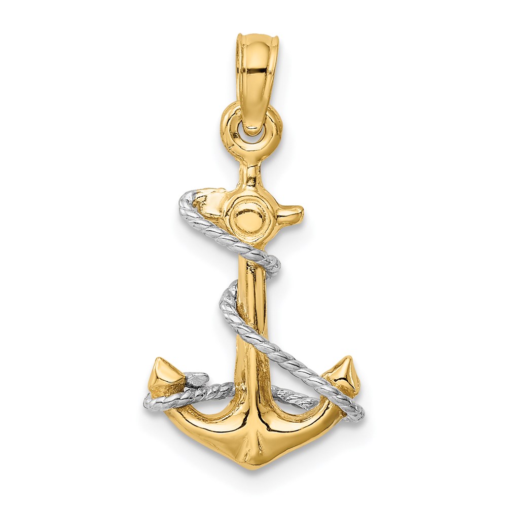 14K Two-Tone 3-D Anchor with Rope Pendant