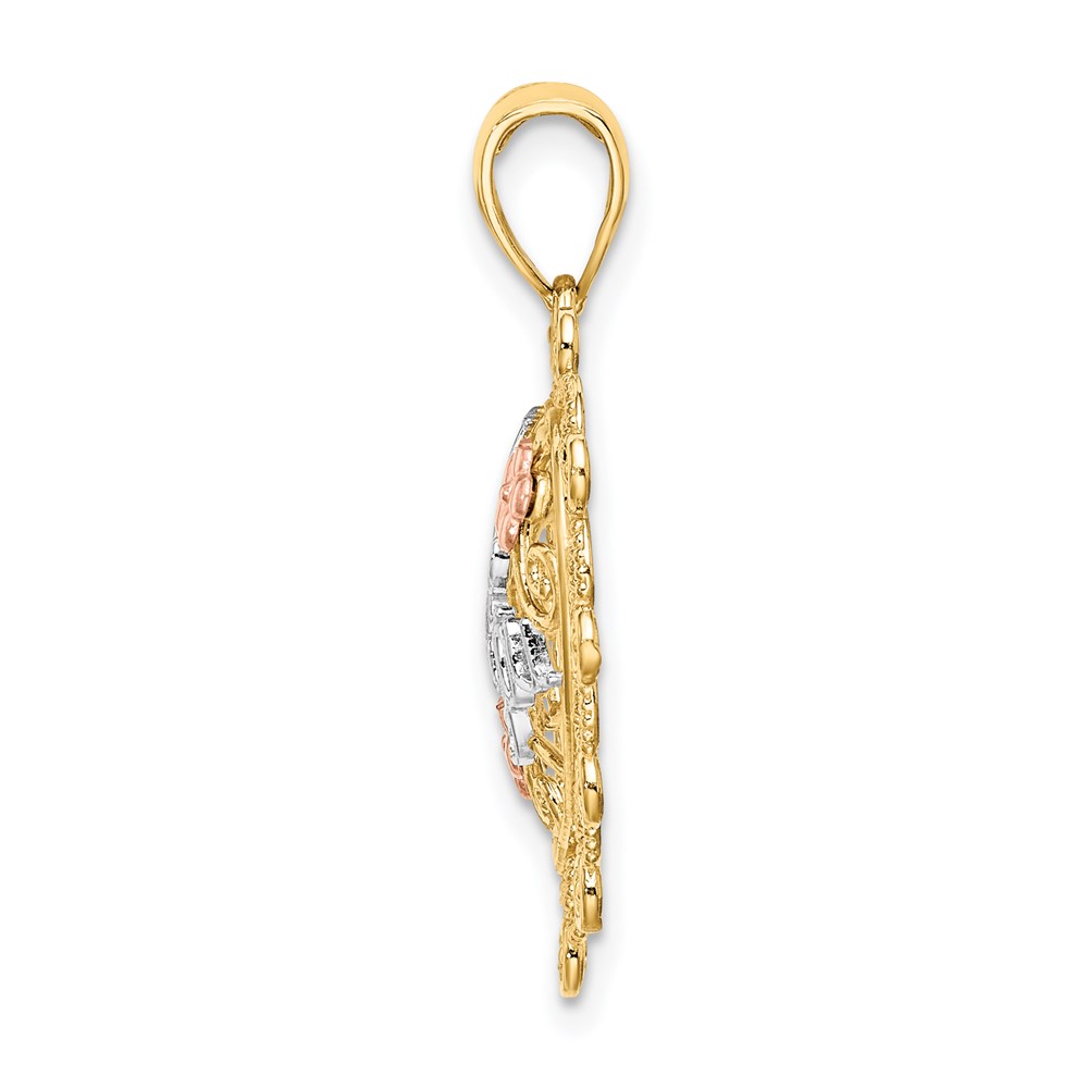 14k Two-tone and White Rhodium I LOVE YOU Filigree Heart with Flowers Charm
