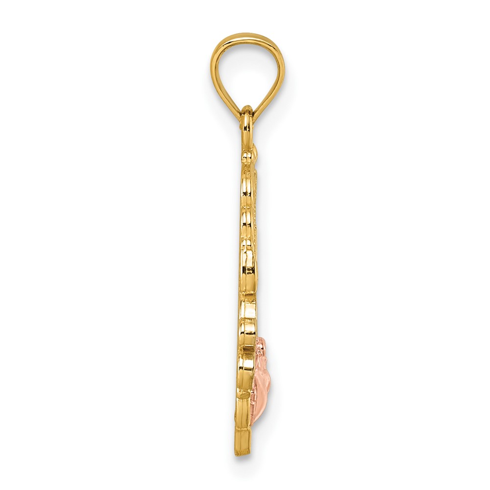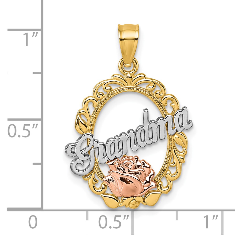 14k Two-tone and White Rhodium Polished GRANDMA Rose Oval Pendant