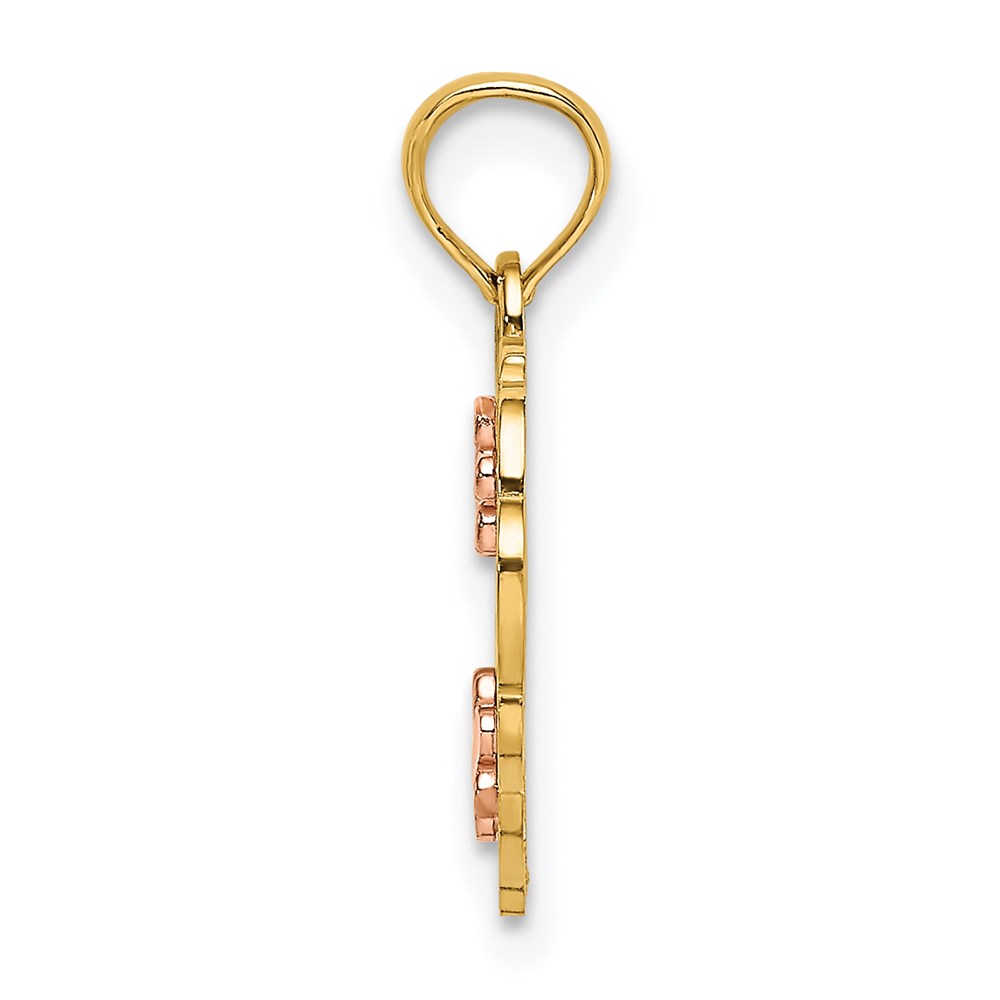 14k Two-Tone Diamond-cut #1 GOD MOTHER and Flowers In Heart Charm
