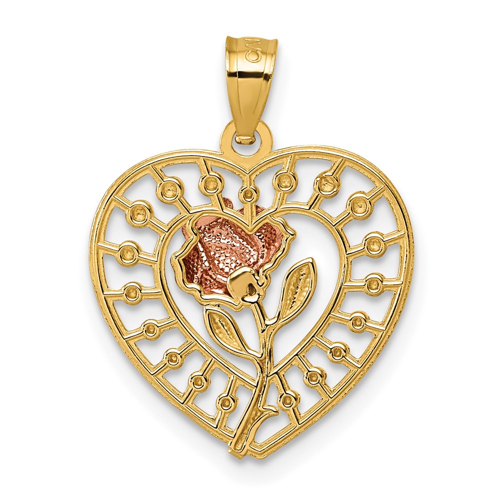 14k Two-tone Diamond-cut Polished Rose In Heart Pendant