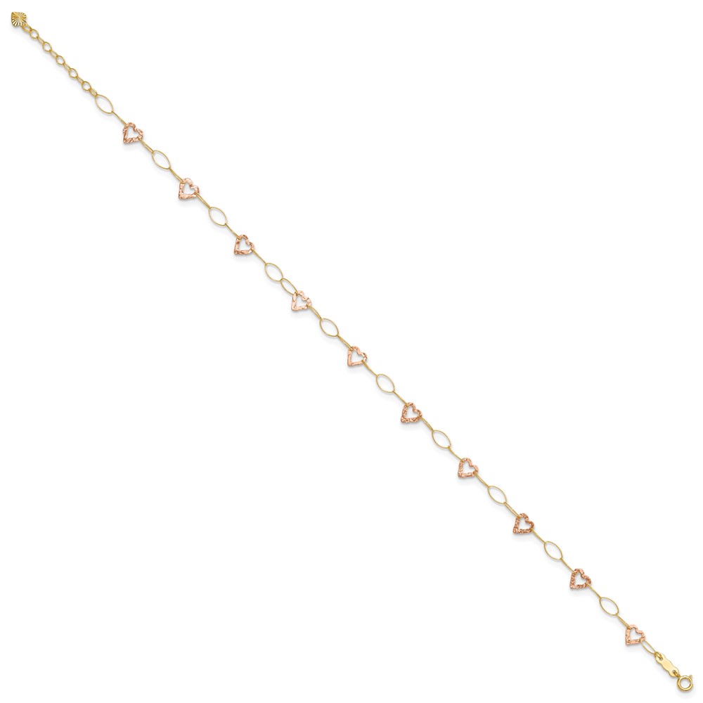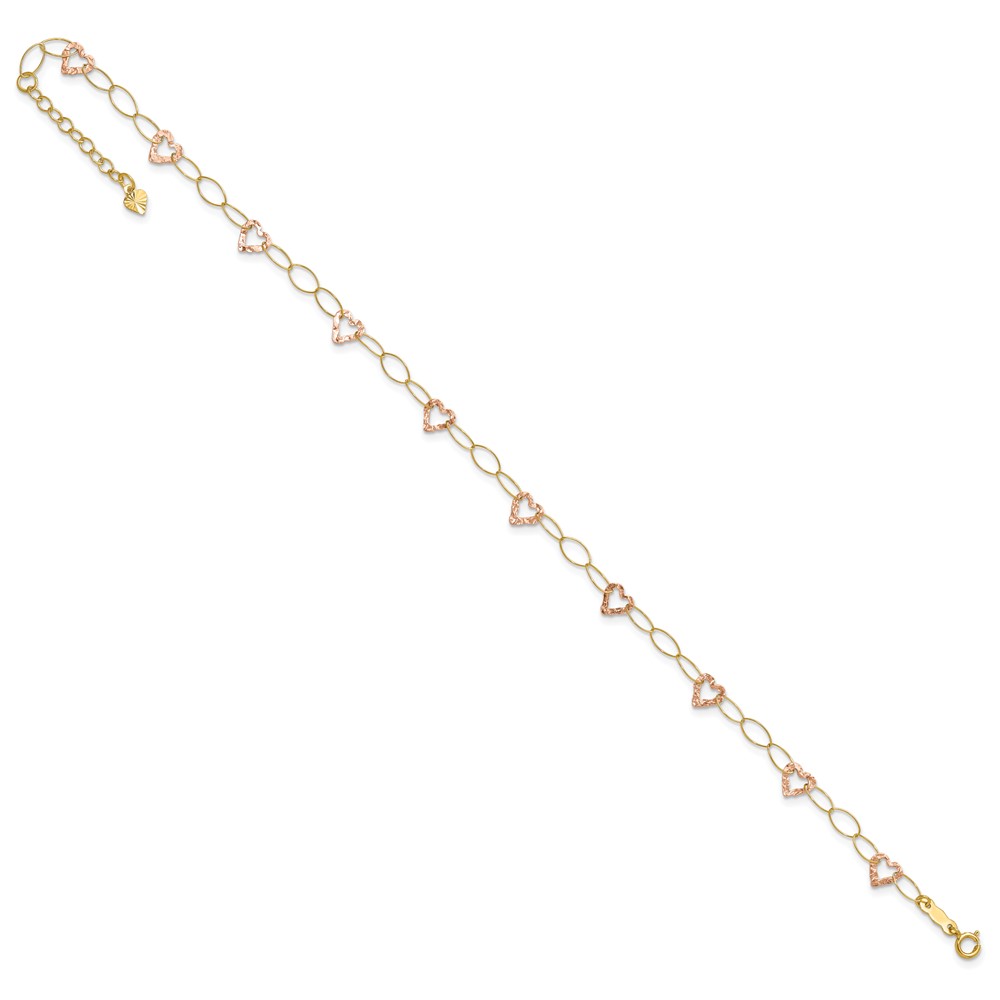 14K Two-tone Polished Open Hearts 5-Station Plus Extender – Total Anklet