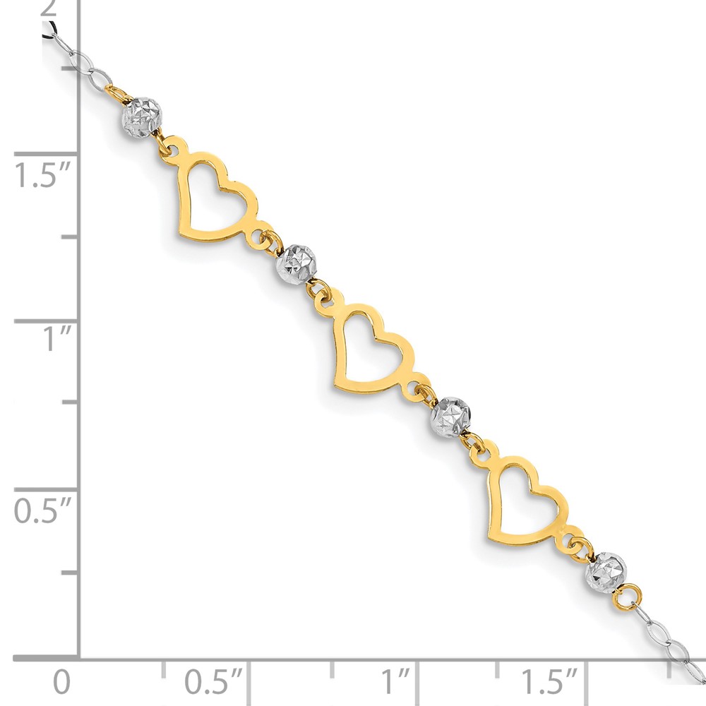 14K Two-tone Hearts and Diamond-cut Beads 7.5 inch Bracelet