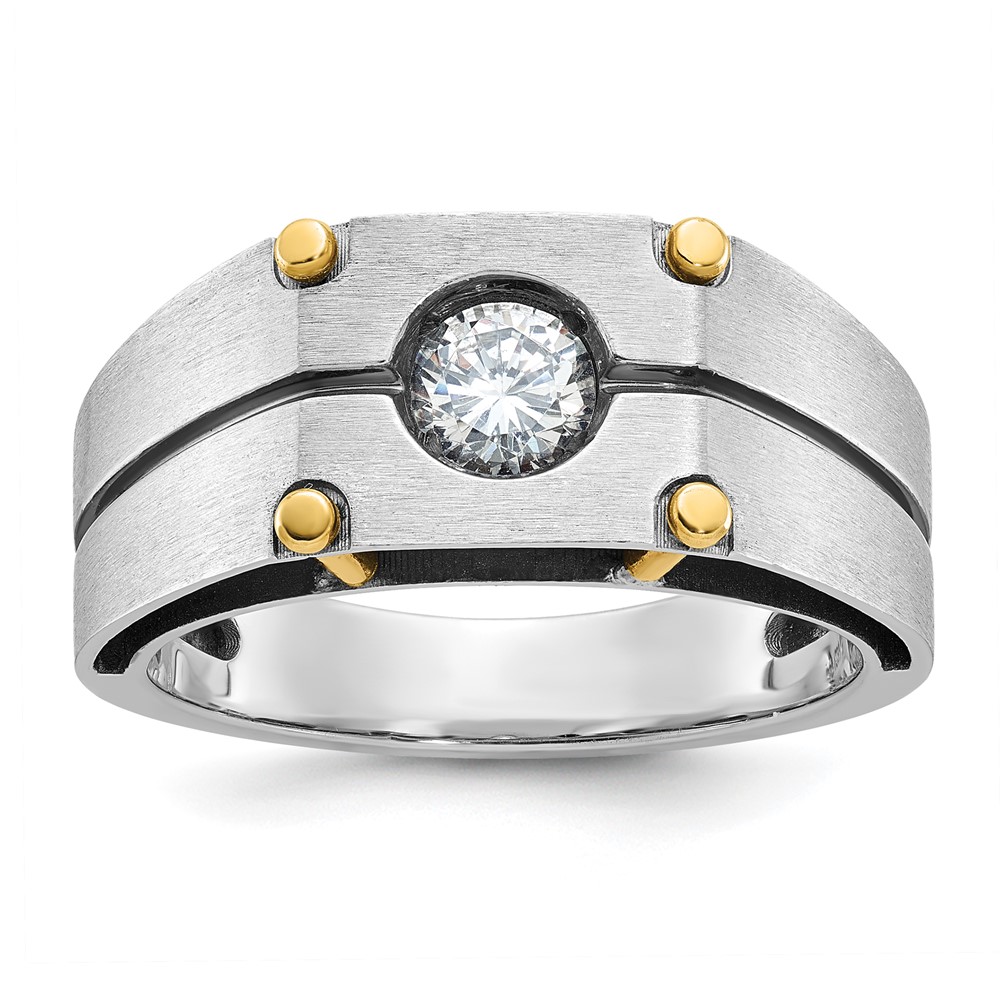 14k Two-tone IBGoodman Men’s Polished and Satin 1/2 carat Diamond Complete Ring