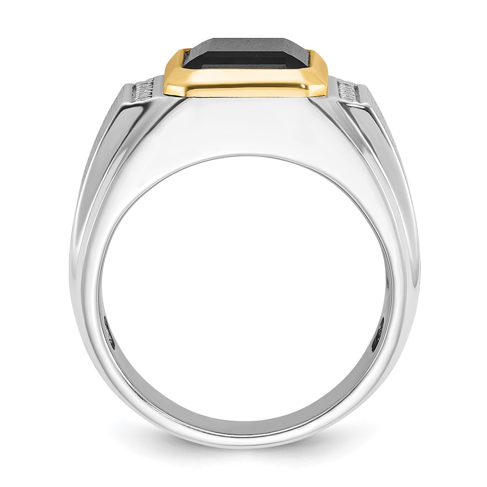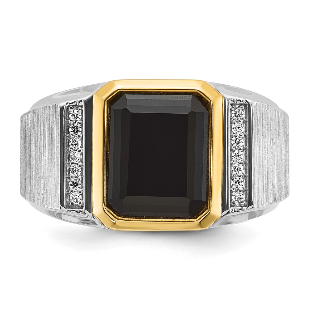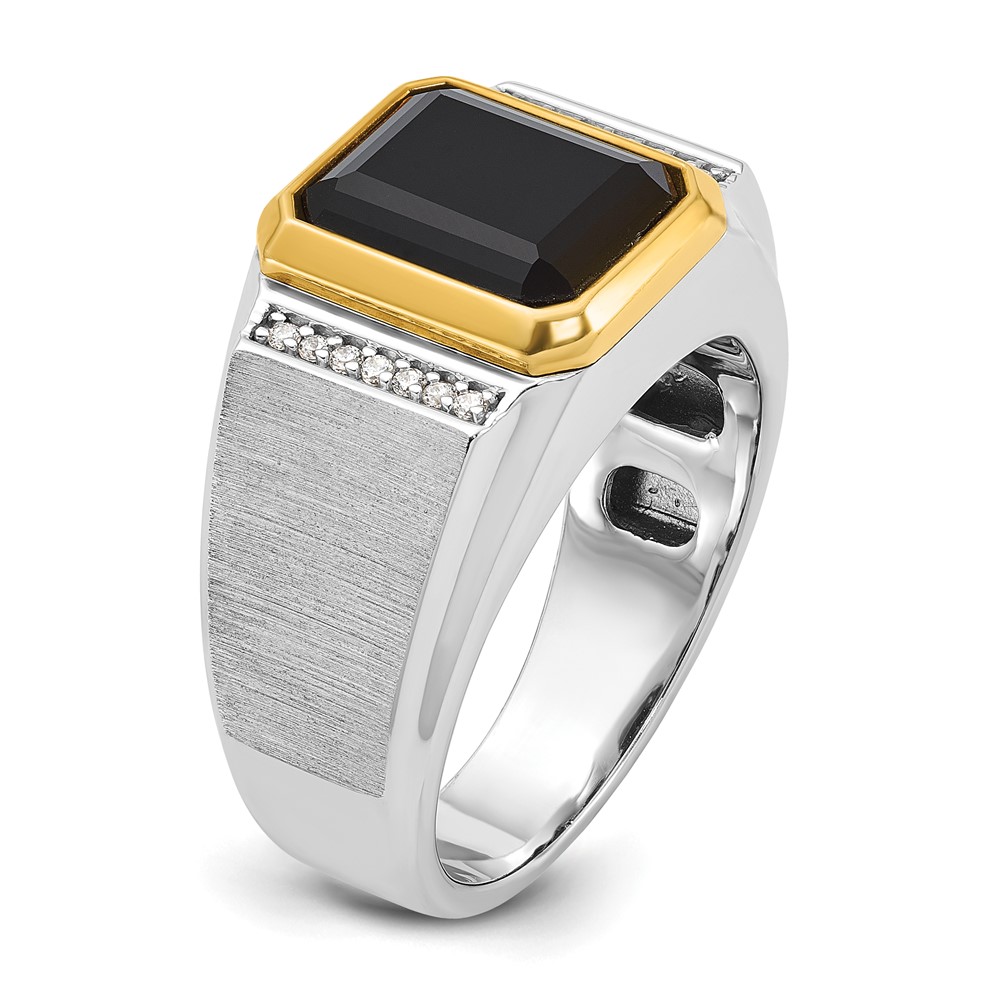 14k Two-tone IBGoodman Men’s Polished and Satin Onyx and 1/10 carat Diamond Complete Ring