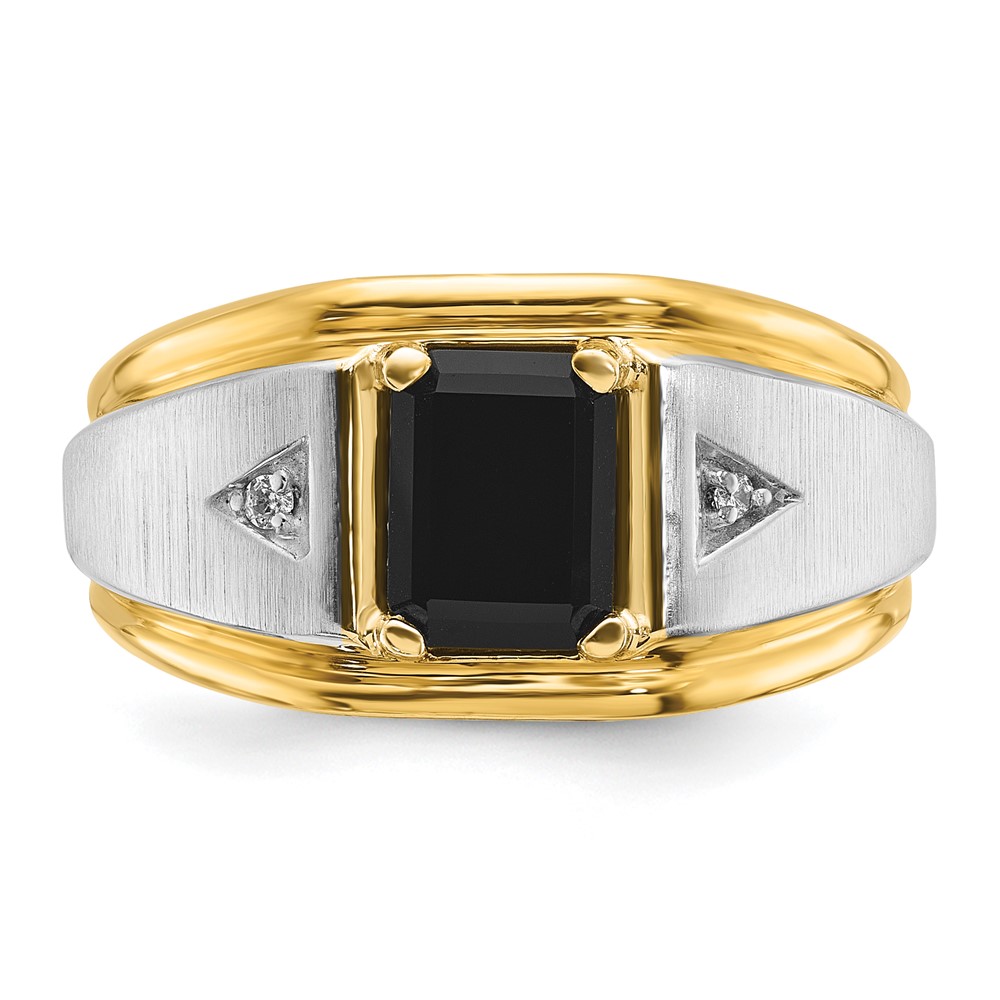 14k Two-tone IBGoodman Men’s Satin Onyx and Diamond Complete Ring