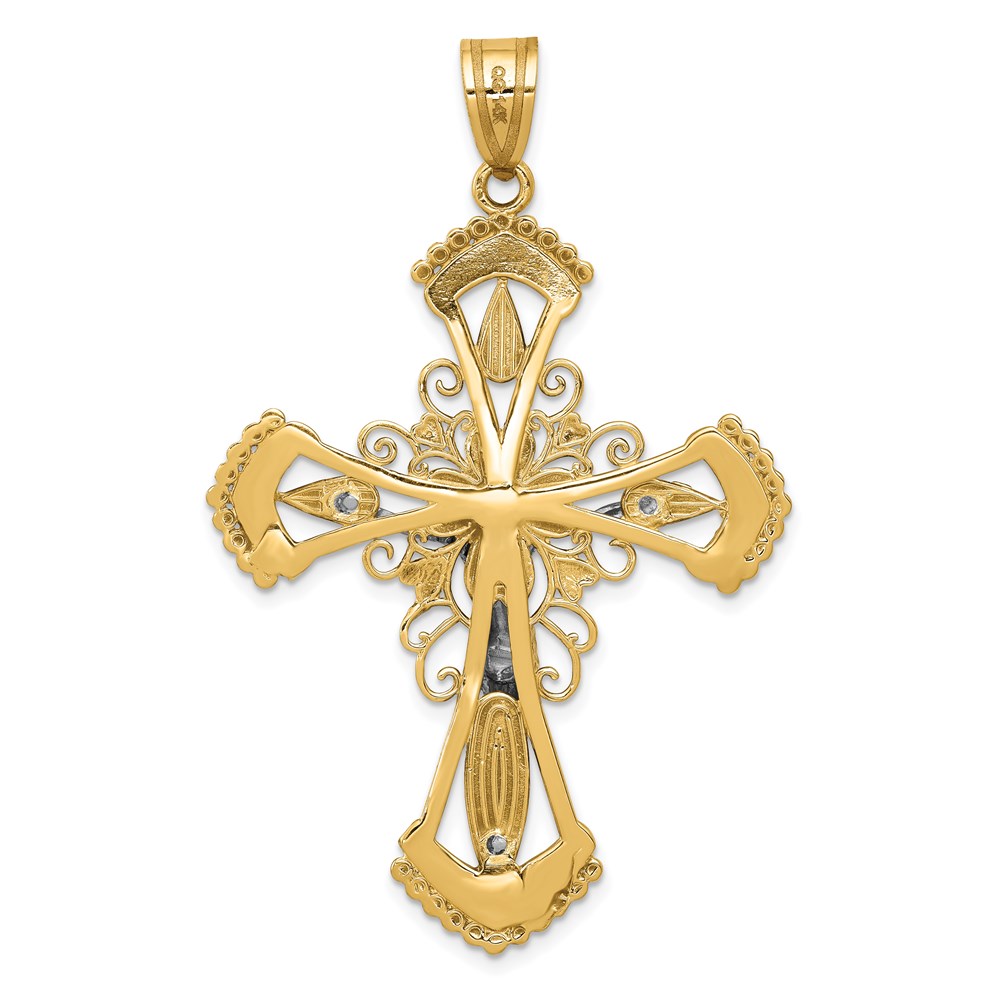 14k Two-tone Large Diamond-cut Crucifix Pendant