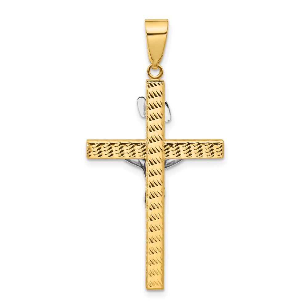 14K Two-tone Polished and Diamond-cut Crucifix Pendant