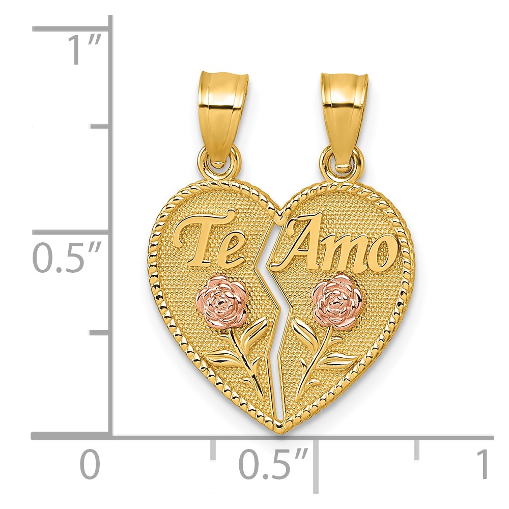 Be the first to review “14k Two-tone Polished Break-Apart Heart With TE AMO And Roses Pendant” Cancel reply