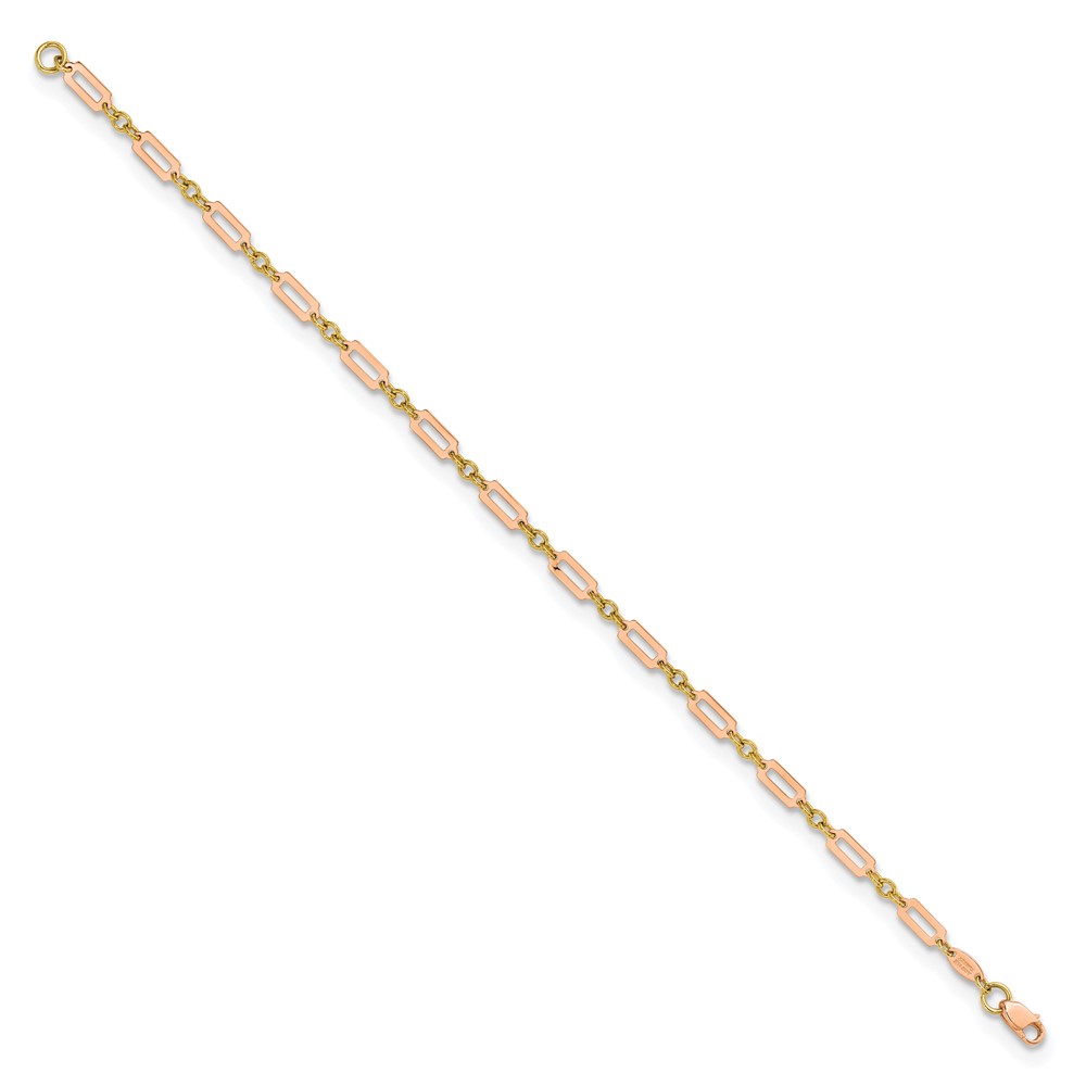 14k Two-tone Polished Fancy Rectangle Link 7.5 inch Bracelet