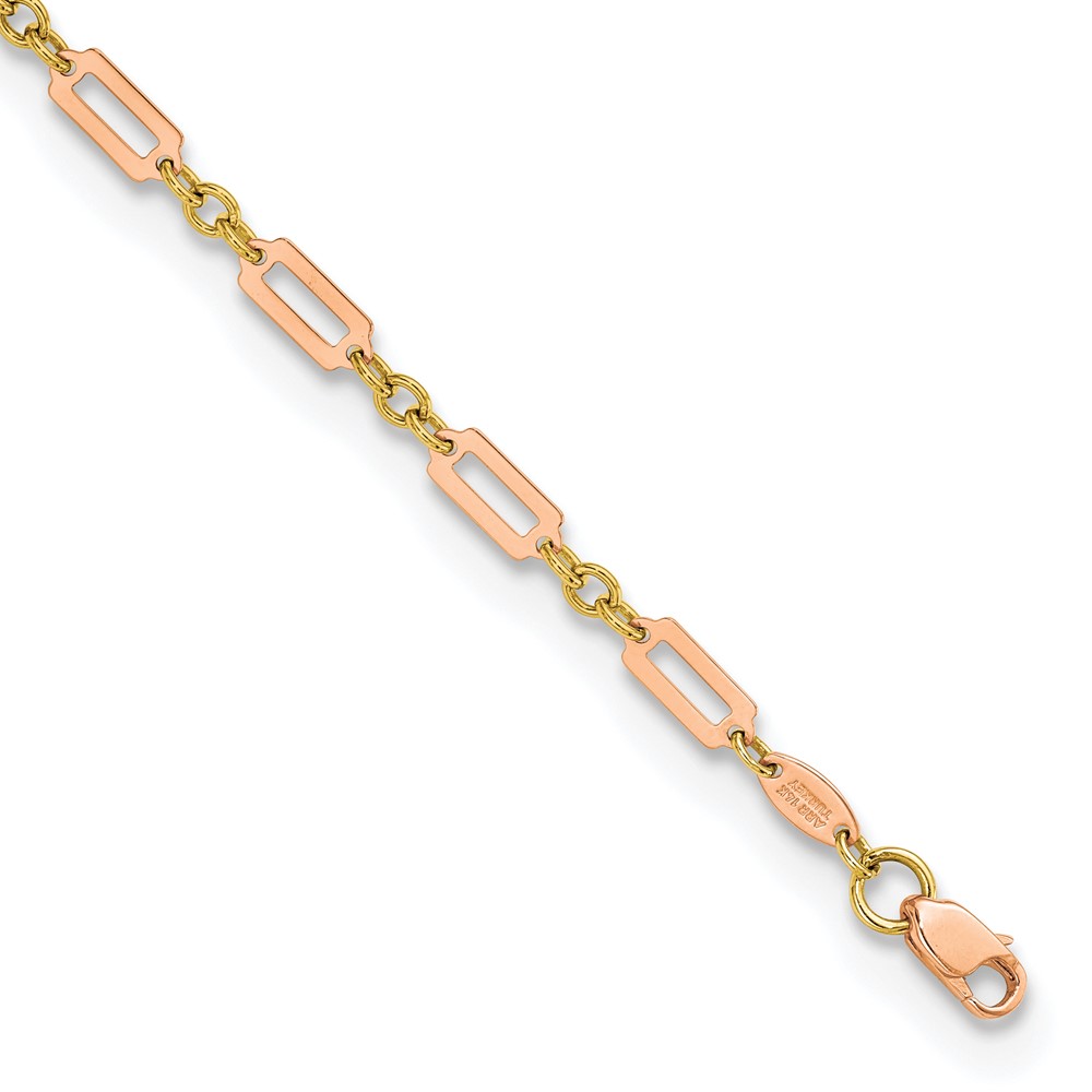 Be the first to review “14k Two-tone Polished Fancy Rectangle Link 7.5 inch Bracelet”