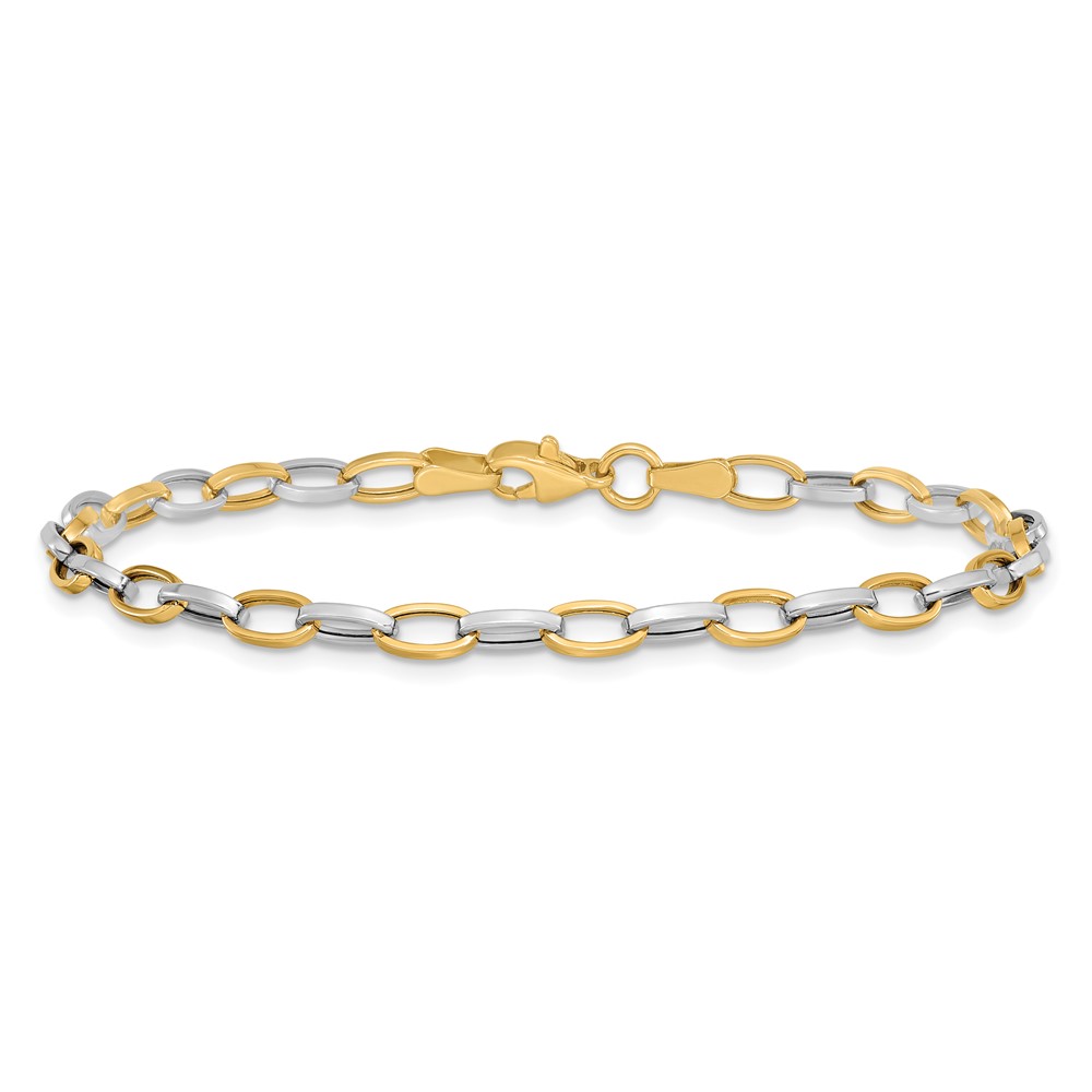 14k Two-tone Polished Oval Cable Link 7.25 inch Bracelet
