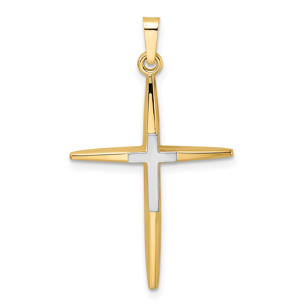 14k Two-tone Polished Solid Double Cross Pendant