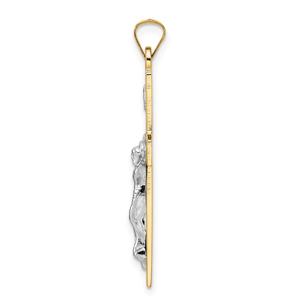 14k Two-tone Polished Solid INRI Crucifix Pendant