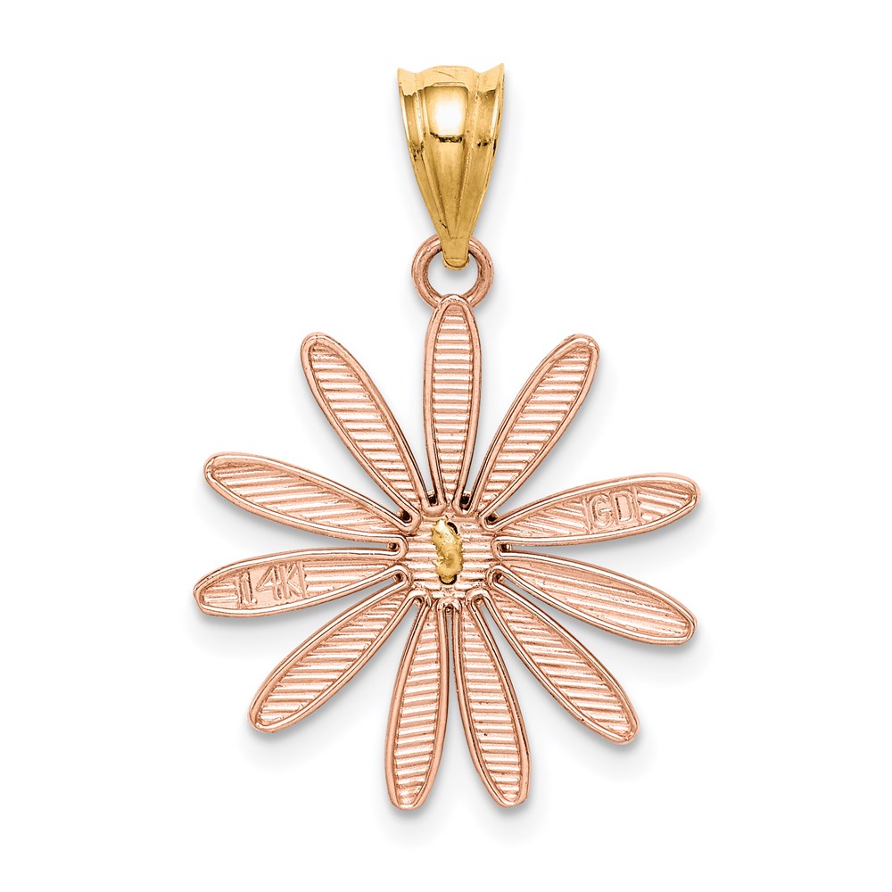14k Two-tone Rose and Yellow Gold Daisy Pendant