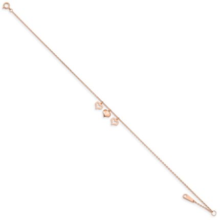 14k Rose Gold 3 Heart Dangles Plus Extender – Total Anklet